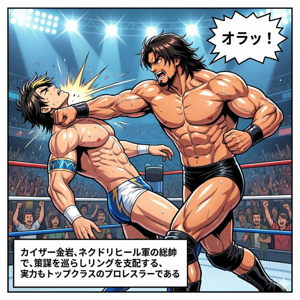 TOP06.ギャラリー01.カイザー金岩 【ギャラリー】ネクドリ漫画#019(2026/03/14) 2026/03/14 01.カイザー金岩 02.新井 聖那 06.ギャラリー 242 Viewsラフィ #019:良きパパのカイザー金岩 さすがに正義のプロレスラーをボッコボコにいたぶっているとはまだ言えませんね。 Post Views: 191 【試合】(280 – 283)2026年3月シリーズ(2) 2026年3月シリーズ(3)の対戦カード TOP06.ギャラリー01.カイザー金岩