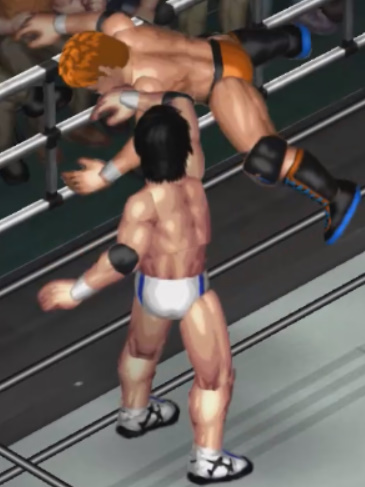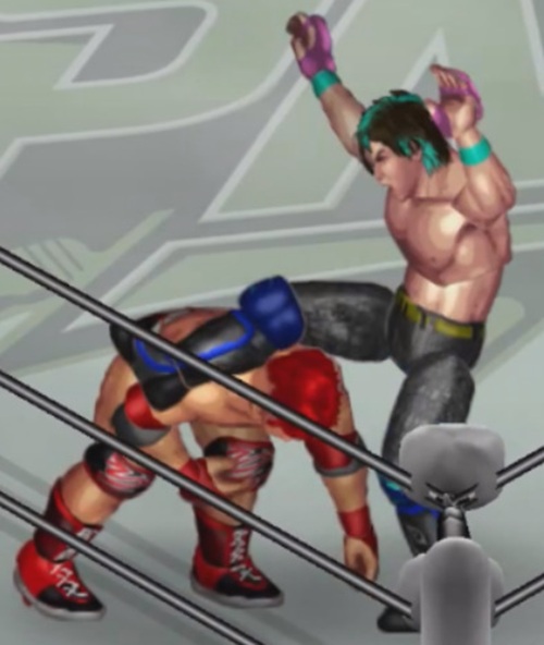 庄司が変型リバースチキンウィングでホセを痛めつけるがホセもコーナー逆さ吊りフットスタンプで反撃。
