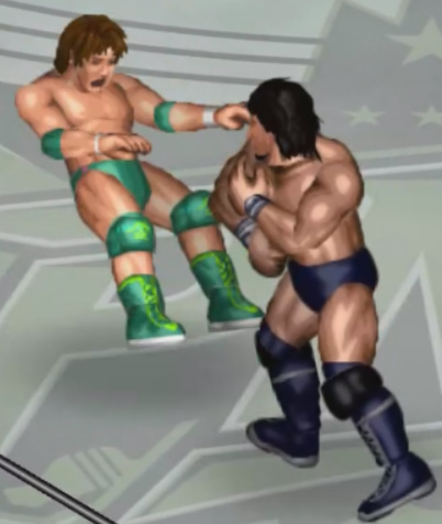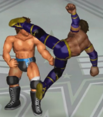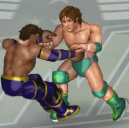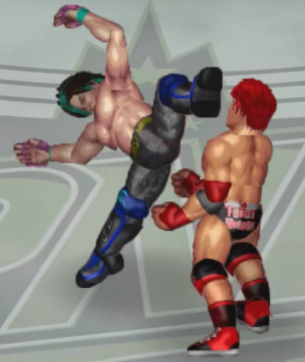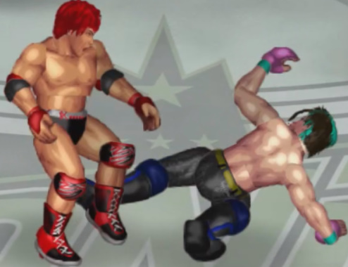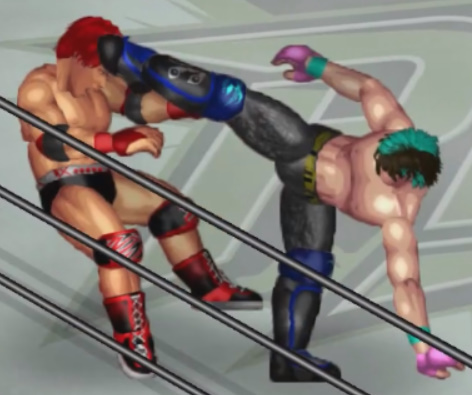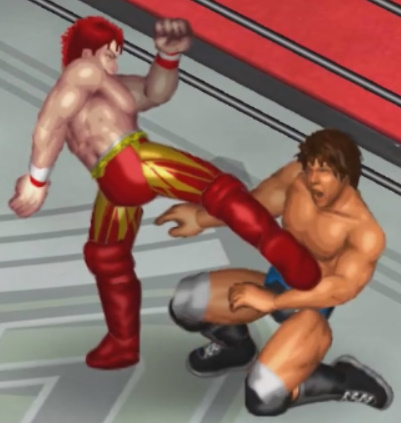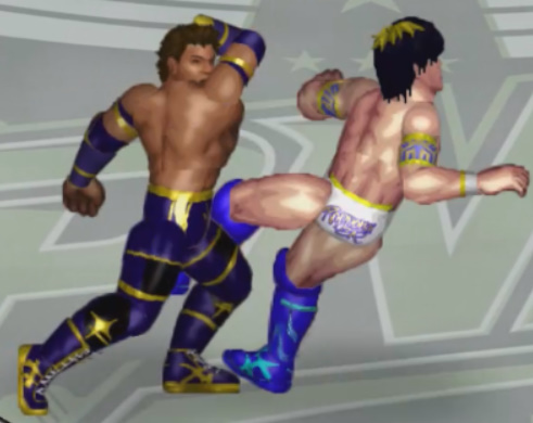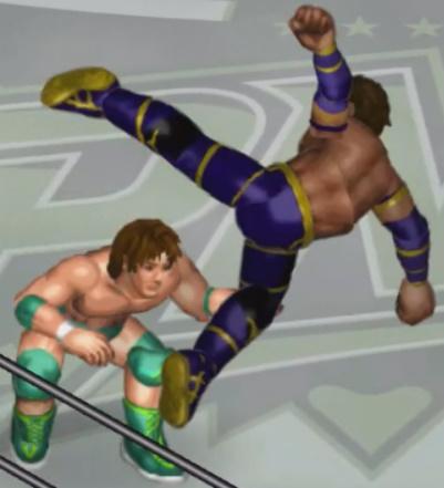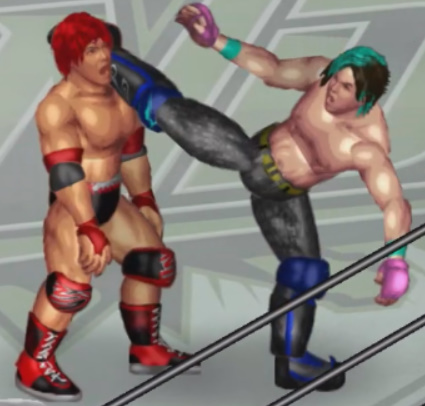 リストの取り合いから庄司が天神にタッチする振りからのローリングソバットでホセの怒りは増加。