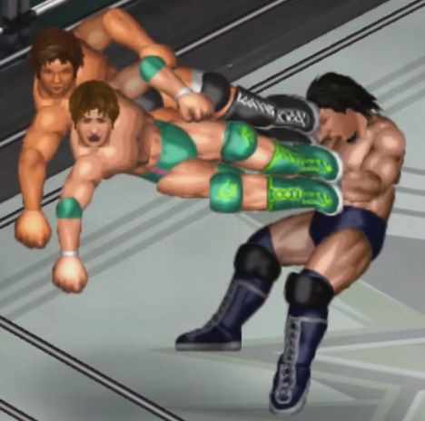 神崎にタッチしたホセはサンドイッチ延髄斬り、W.バックドロップとツープラトン連発。