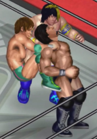 スイング式のフランケンシュタイナーホイップでホセが庄司を投げて両者タッチ。