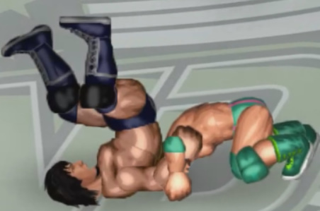 必殺技のジャンピング延髄踵落としを決めて勝負ありかと思われたが若林の左手がロープに届く。