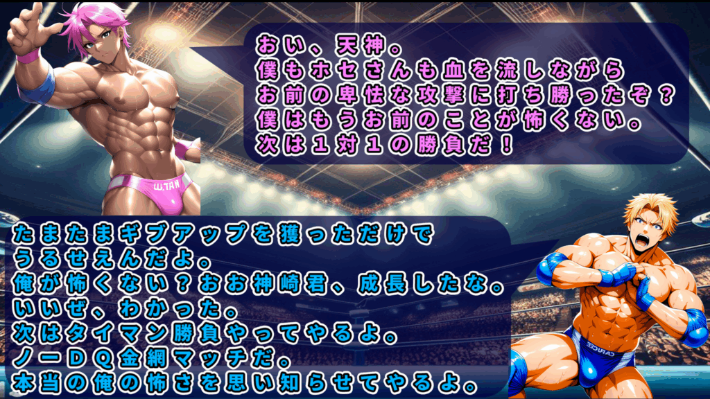 天神も承諾するがまさかのノーDQ金網マッチで本当の怖さを思い知らせると予告。