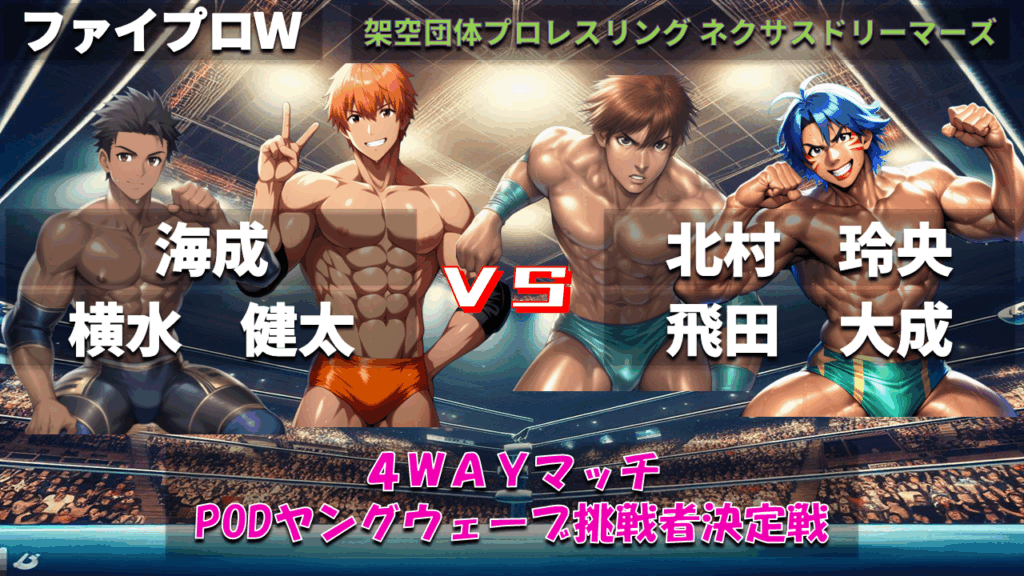 PODヤングウェーブチャンピオンの高西への挑戦権を得るための4WAYマッチ。