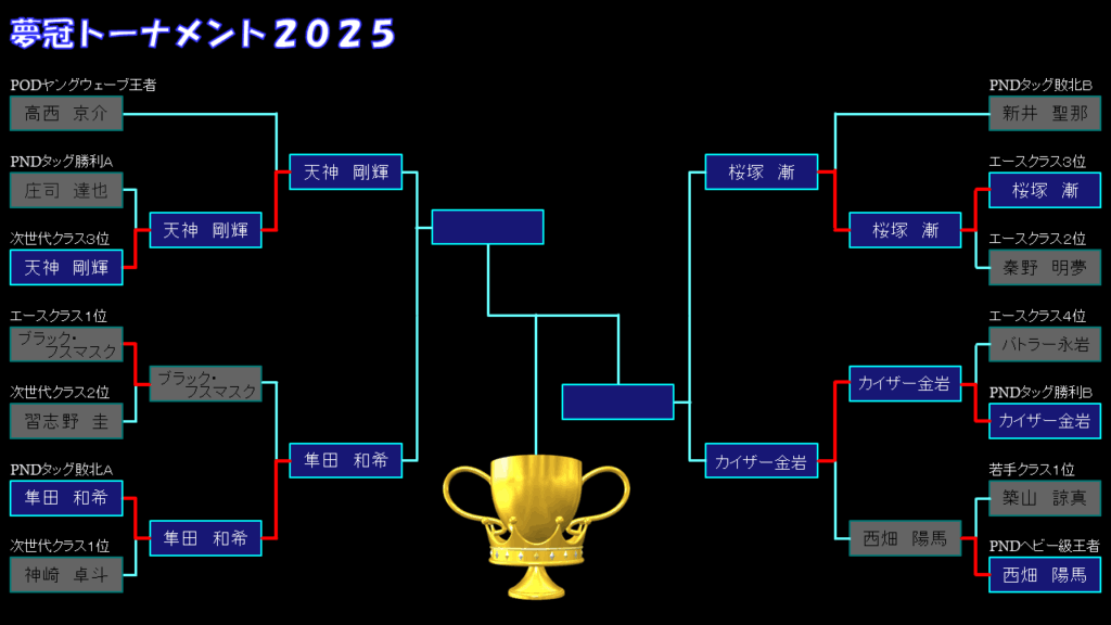 ネクドリヒール軍の総帥であるカイザーとPNDヘビー級チャンピオンの西畑が対決する頂上決戦。