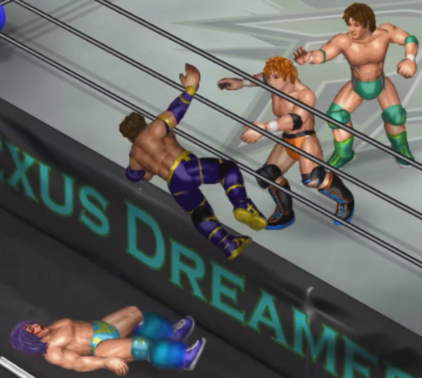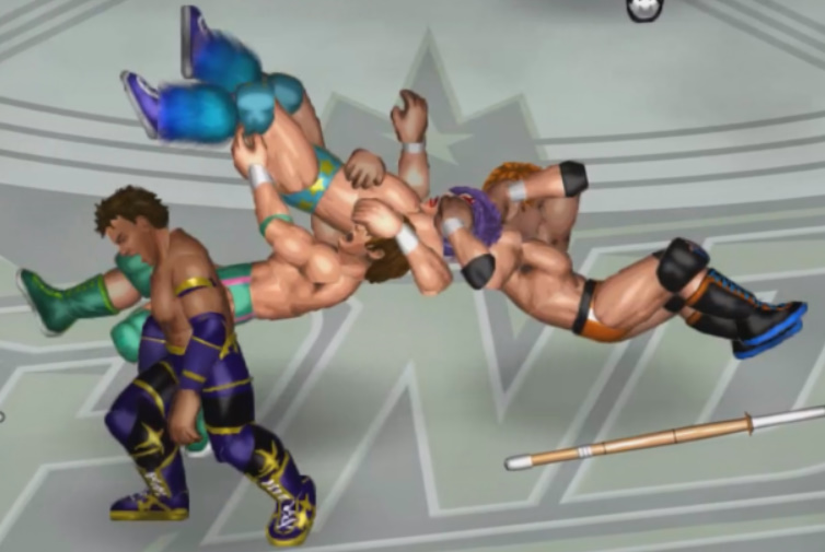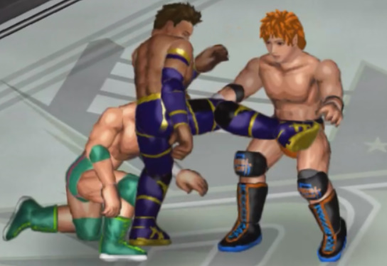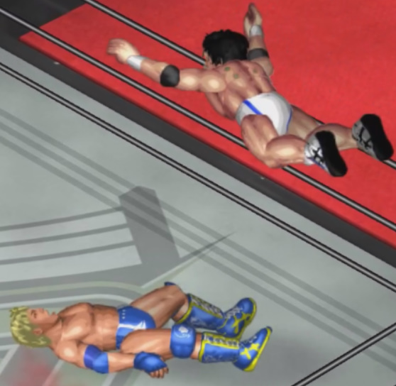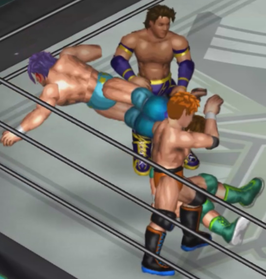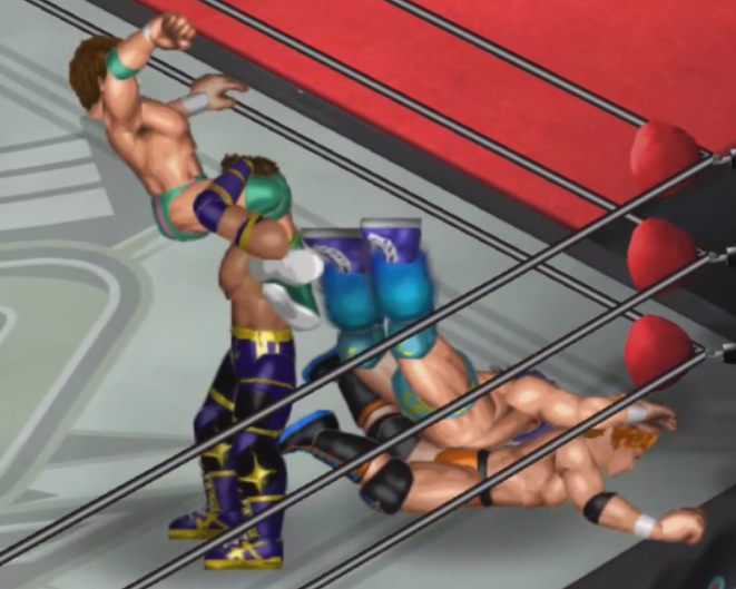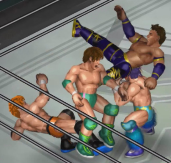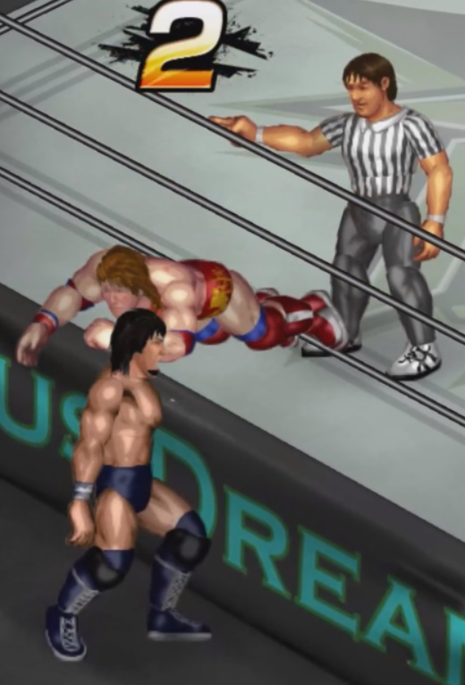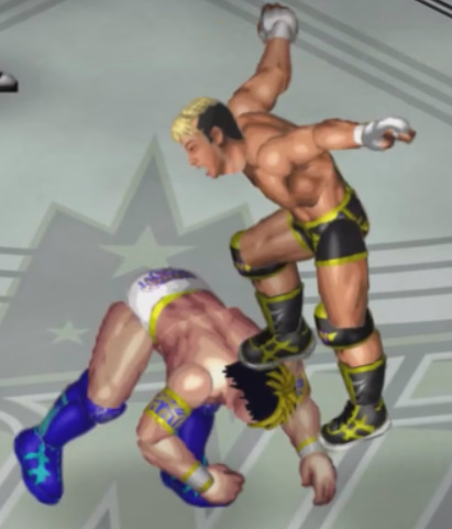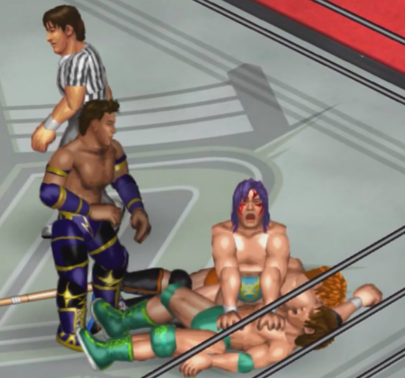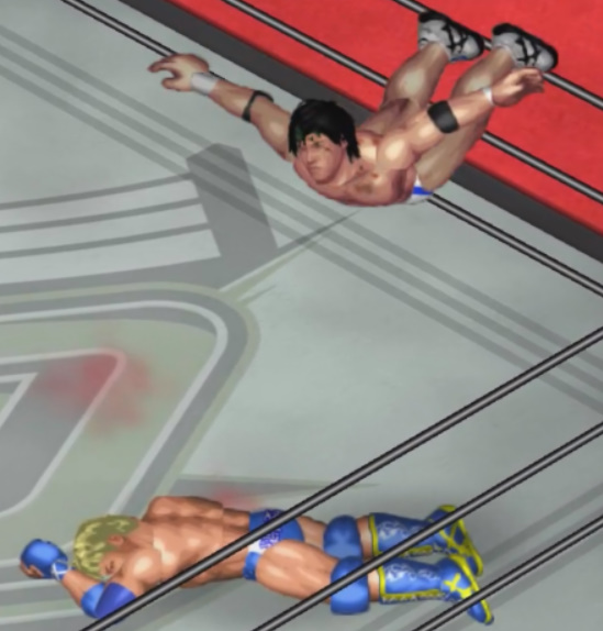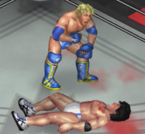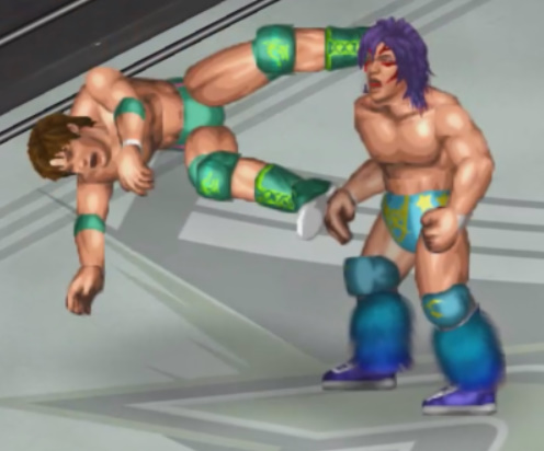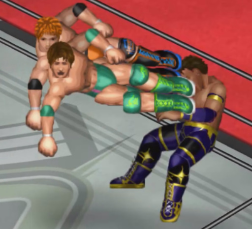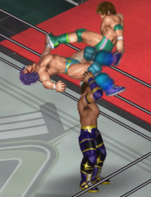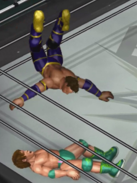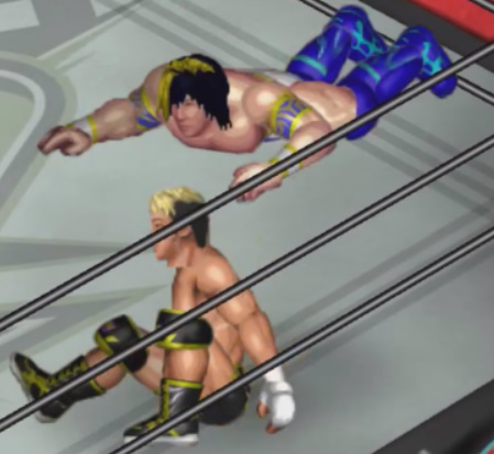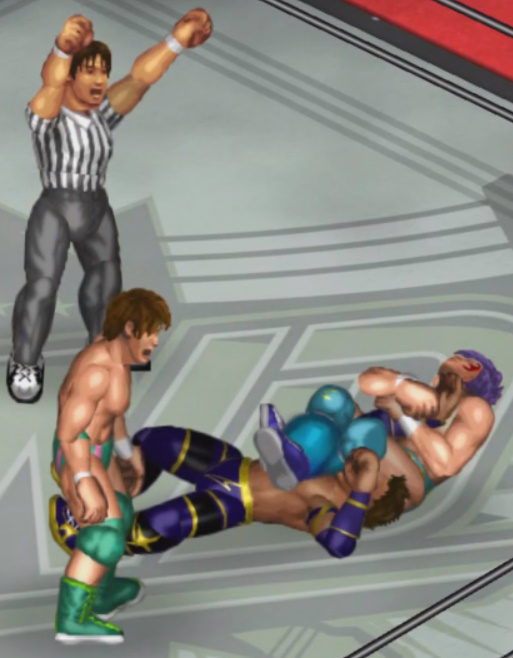 しかし、海成の打撃に吹き飛ばされると上から横水がシューティングスタープレスで降ってきて大ダメージ。