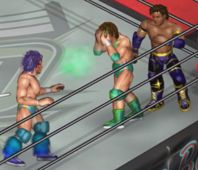 飛田は北村にも毒霧、北村の緑色度が10%アップ。