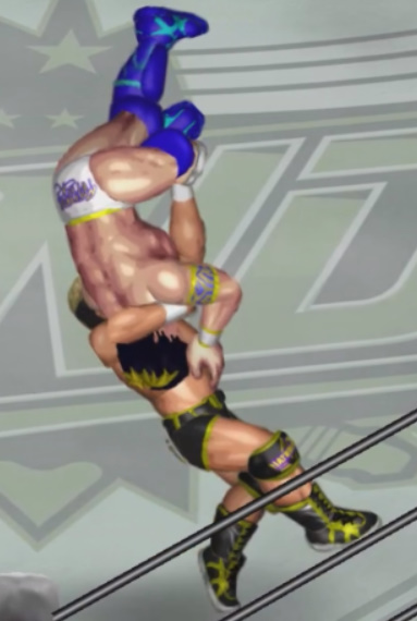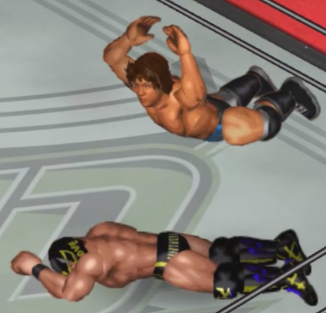 その後も開脚跳びスプラッシュ、クロスアームサンダーファイヤーパワーボムと畳み掛けるが崩せない。