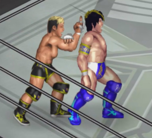 リストの取り合いから隼田がフスマスクをコーナーに振るがフスマスクは華麗に1回転。