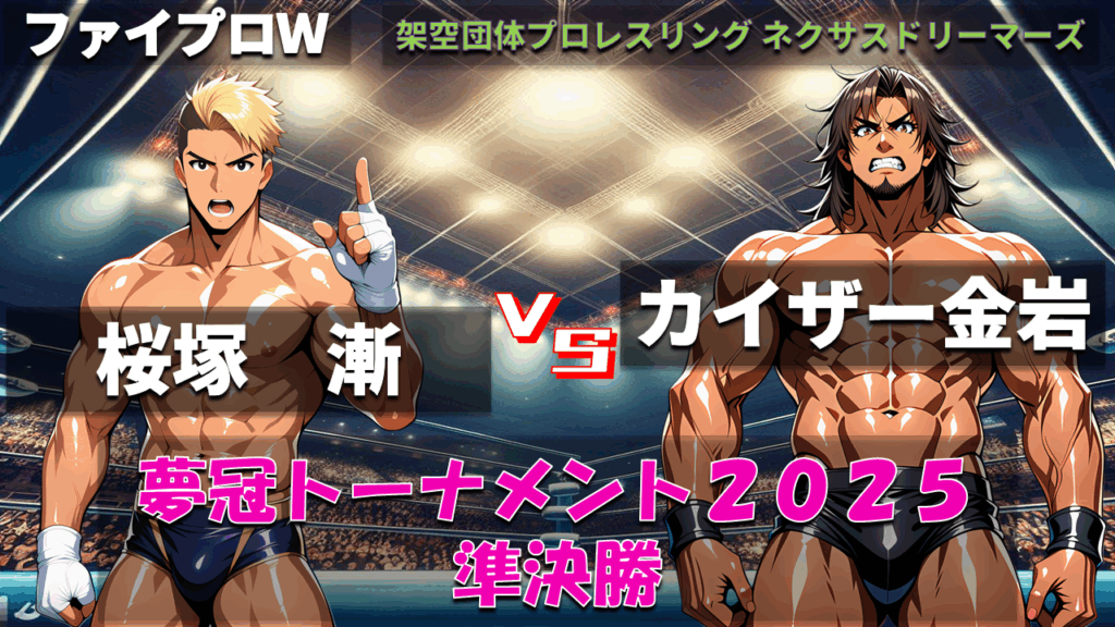 アウトドアーズ代表の桜塚とネクドリヒール軍の総帥であるカイザーの直接対決。