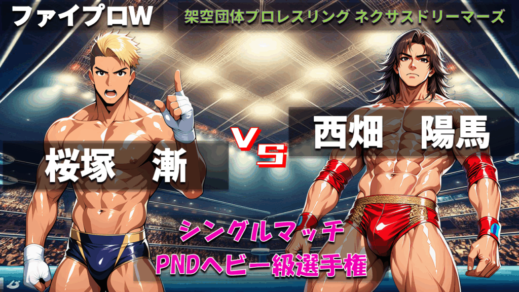 夢冠トーナメントを優勝した桜塚がついにPNDヘビー級のベルトに挑戦。