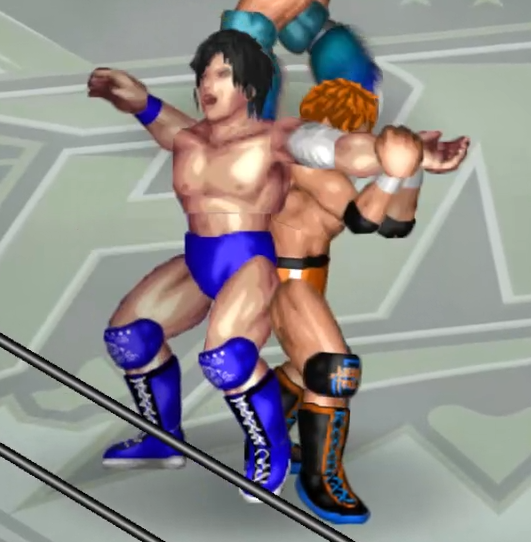 ロープに向かって投げると海成が場外に転落して、海成が失格。