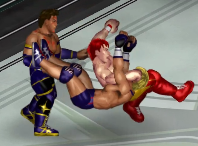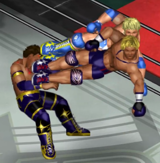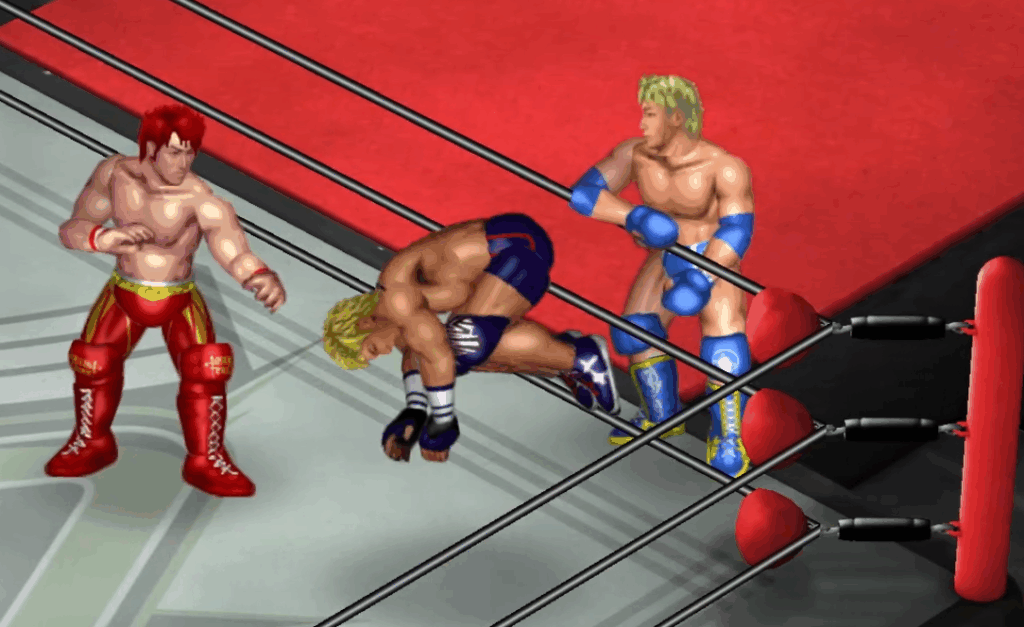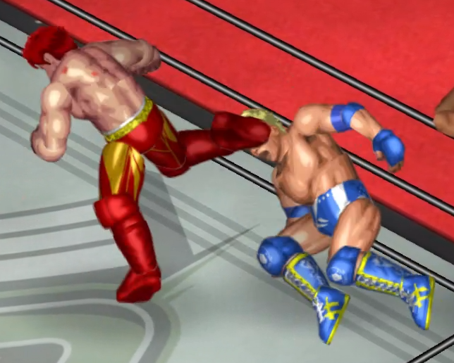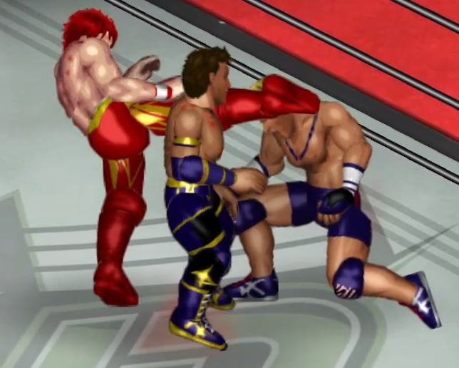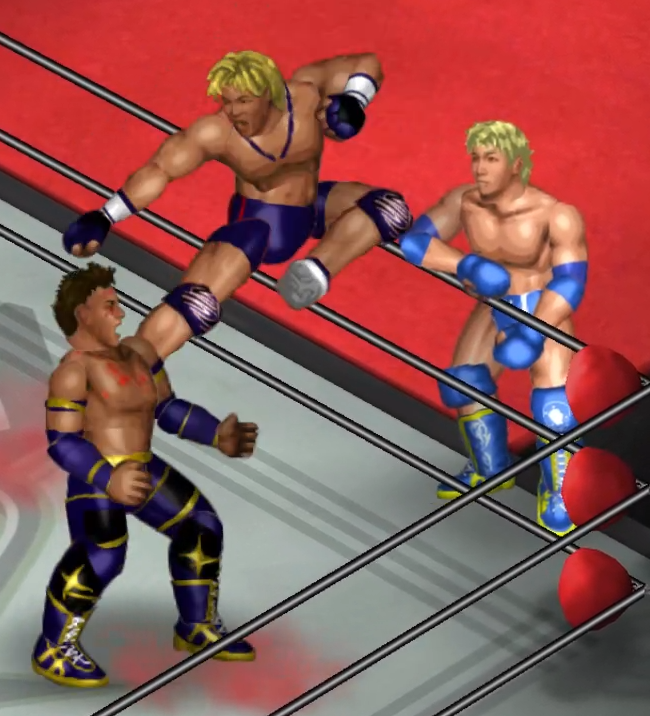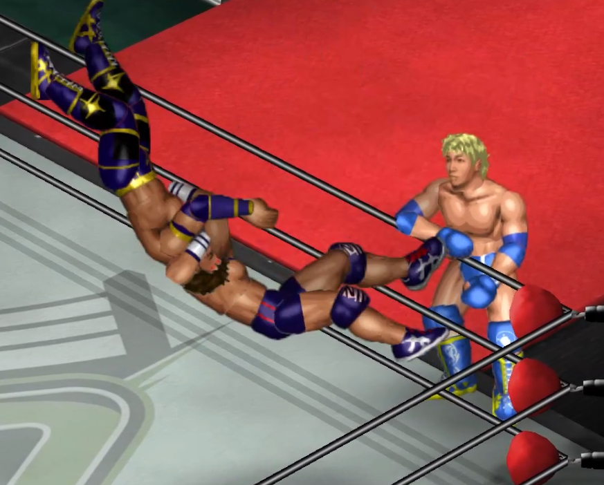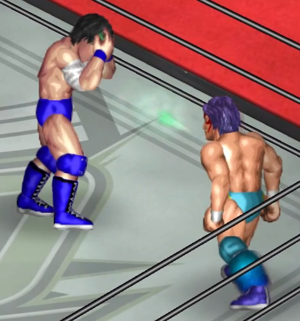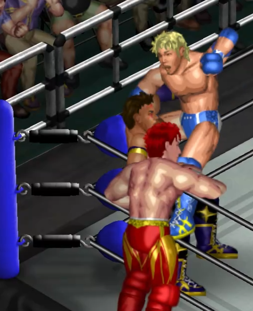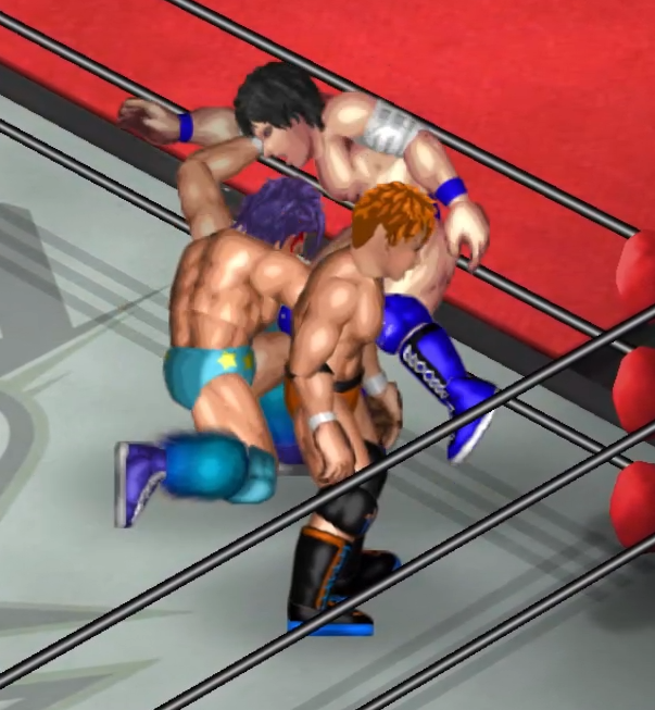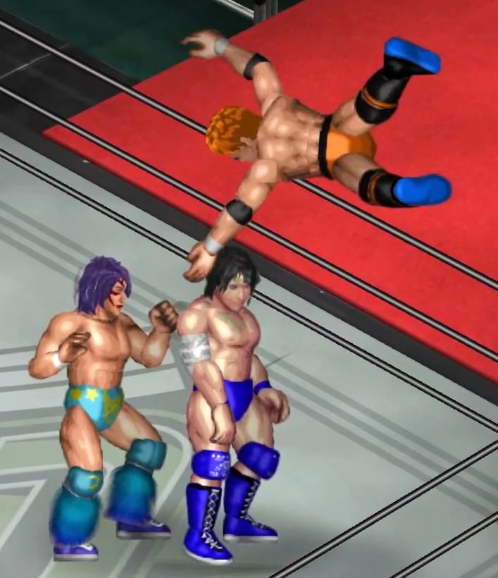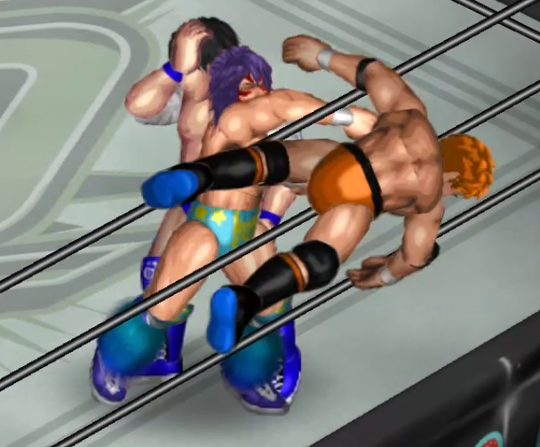 2人の闘いにちょっかいを出す飛田がウザくなったのか連続で場外に追い出される場面も。
