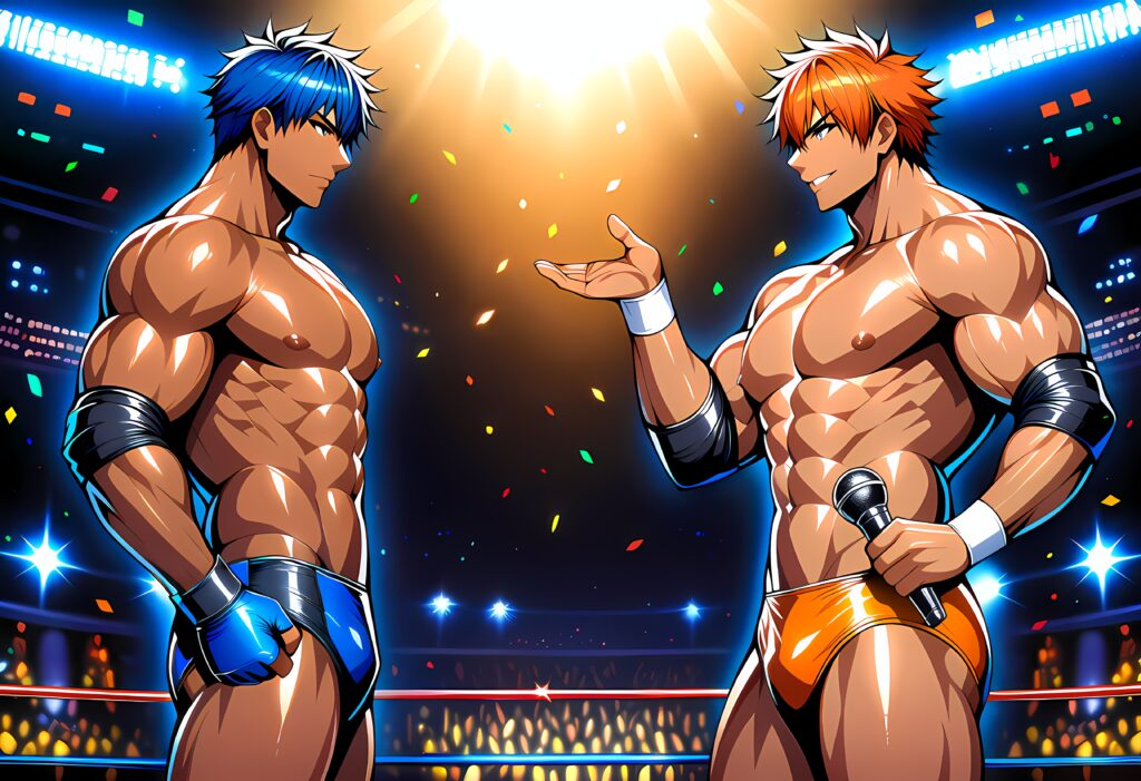 2025年に私と立板三 様のコラボレーション連載企画として、私のキャラクターである「海成」と、立板三 様のキャラクターである「郡 新(こおり あらた)」選手の試合の模様を、AIイラストが私、小説と一部画像の加工が立板三 様の分担で合作する企画がありました。