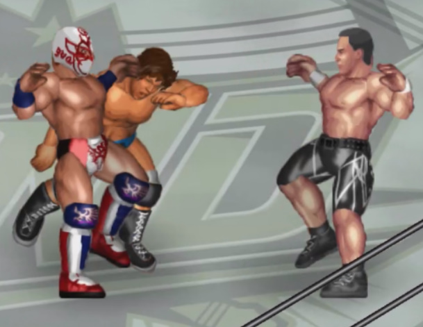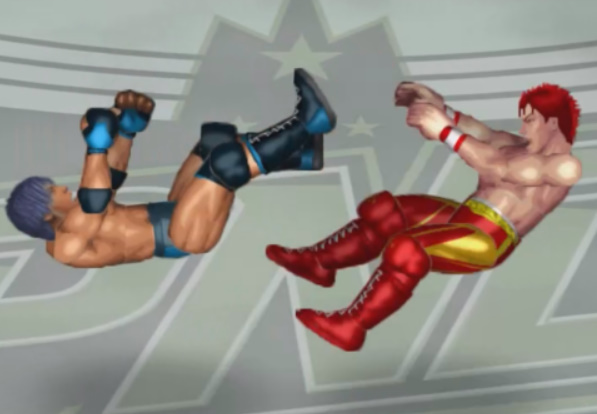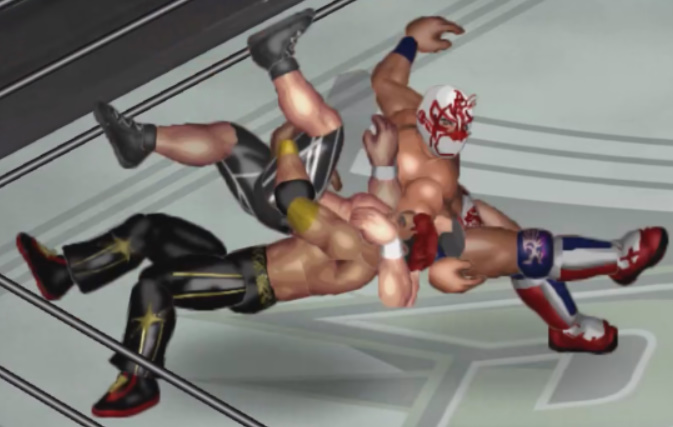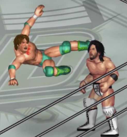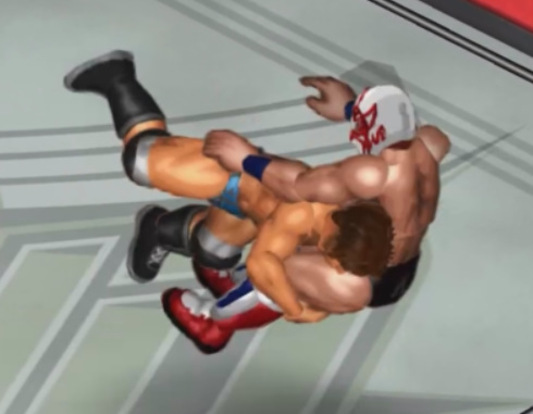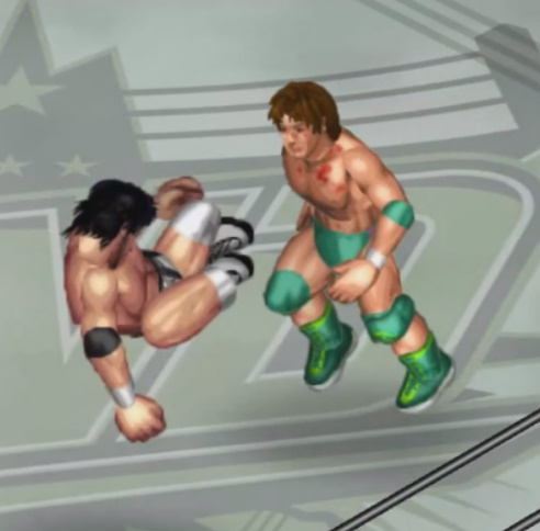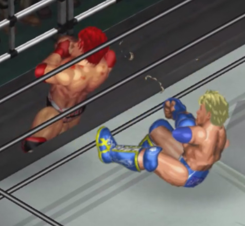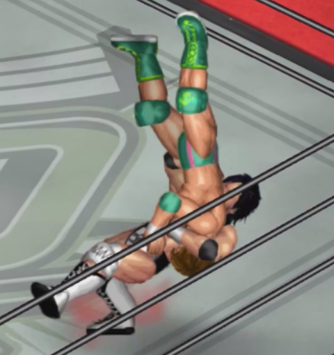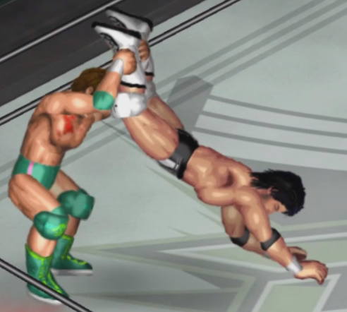 天神の打撃が面白いように当たり、焦った若林が早くも必殺技のジャンピングパワーボム狙いも天神が冷静にリバース。
