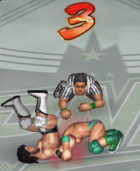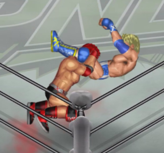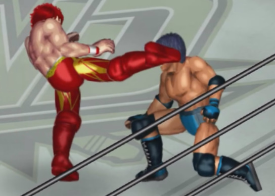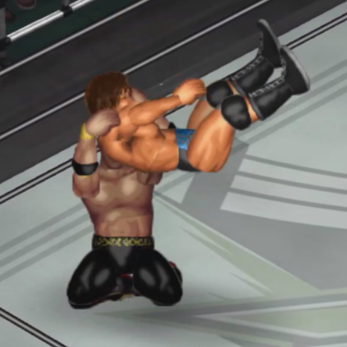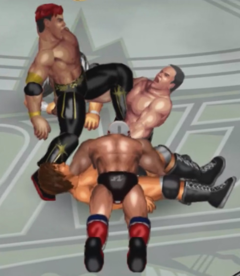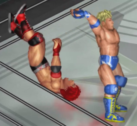 2発目の二回転延髄斬りをカウント2で返されると必殺技のフランケンシュタイナーで丸め込むが惜しくもカウント2.9。
