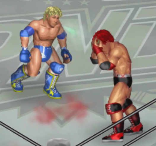 天神の凶器攻撃で早速若林が流血、ワンパターンな攻撃で若林は先手を取られる。