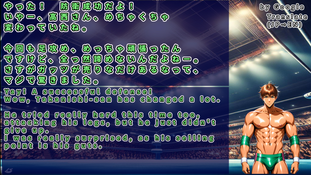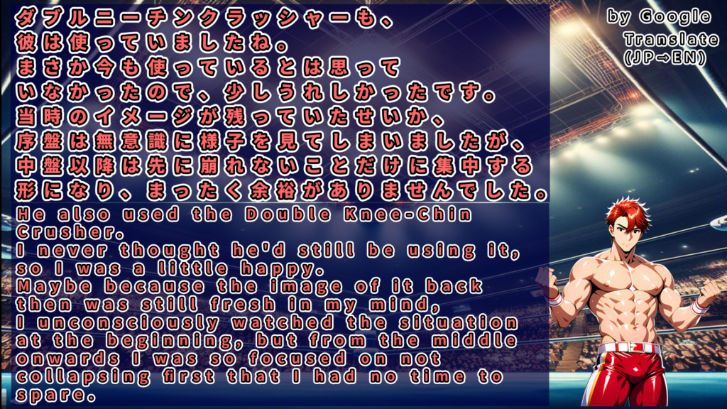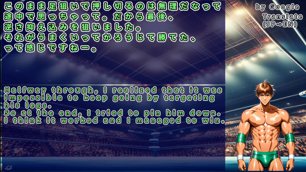 しかし最後はホセのトライアングルランサーが隼田を捕らえ、隼田は遂にギブアップ。