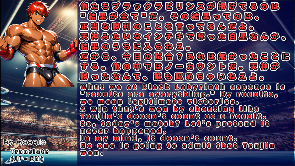 若林は天神に敗れた言い訳を並べるが結果が全てのBラビリンスの理念に矛盾しているため会場は静か。