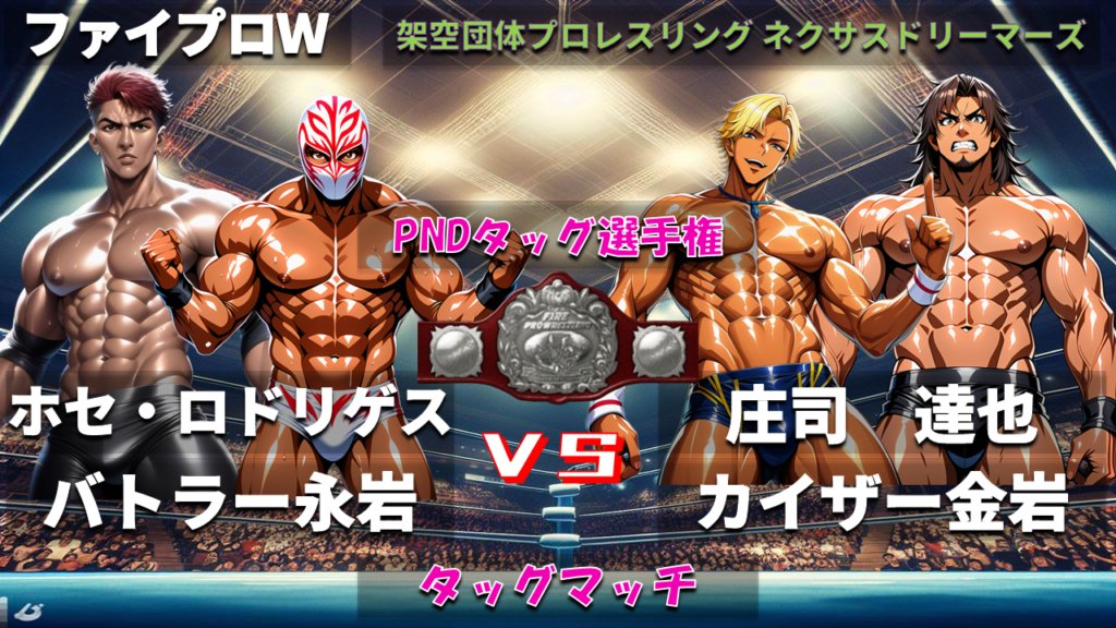 ブラックラビリンス vs ヒール軍の争いの第2弾、PNDタッグのタイトルマッチを行います。
