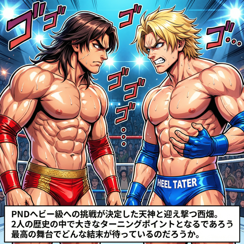 どん底から這い上がりPNDヘビー級チャンピオンになった西畑に対して、燻り続けた天神はジェラシーを感じているに違いない。