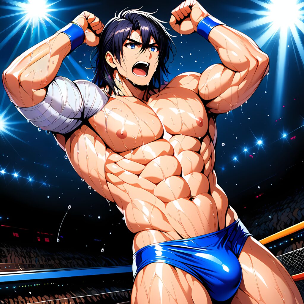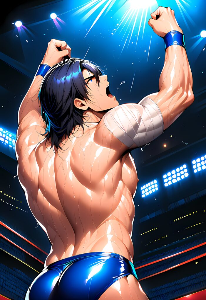 観客のざわめきが波のように広がり、諒真の背中がゆっくりと弓なりに反る。