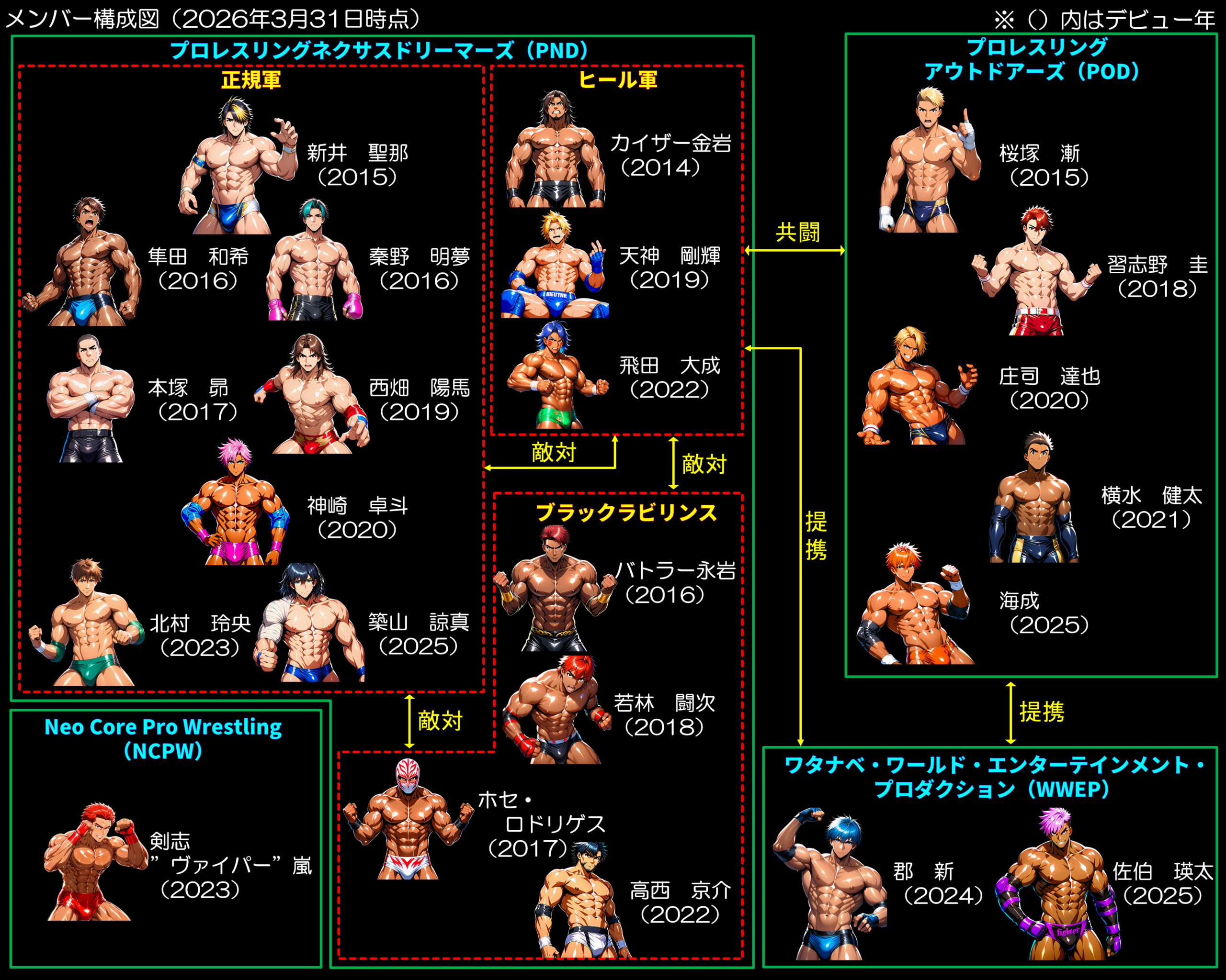 2026年2月からネクドリヒール軍・アウトドアーズ連合軍と提携を開始。